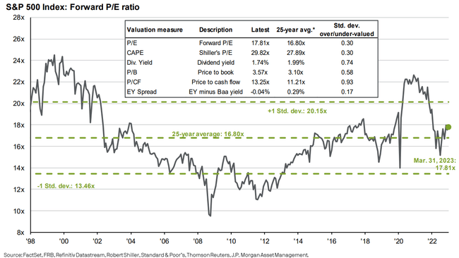 Gemessen an den meisten Bewertungsmultiplikatoren sind US-Aktien derzeit weder ausgesprochen teuer noch ausgesprochen billig. Das KGV des S&P 500 liegt unter 18, während der 25-Jahres-Durchschnitt bei 16,8 liegt. Das konjunkturbereinigte Shiller-KGV liegt unter 30, während der 25-Jahres-Durchschnitt bei 27,9 liegt.