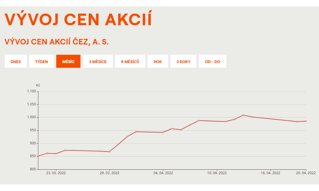 Vor zwei Monaten habe ich einen Artikel über die inländische Aktie CEZ veröffentlicht, die zum Zeitpunkt der Erstellung dieses Artikels bei 852,- CZK notierte. Meine zinsbullische Vorhersage hat sich bisher als erfolgreich erwiesen, denn im letzten Monat wurde ein Gewinn von über 14 % verzeichnet. Heute werden wir uns mit den Gründen für den Anstieg des Aktienkurses befassen und meinen nächsten Ausblick für den Aktienkurs geben.