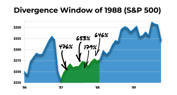 Dies geschah Ende der 1980er Jahre während der Spar- und Darlehenskrise. Qualitativ hochwertige Wachstumsunternehmen wie Microsoft erlebten einen Einbruch ihrer Aktienkurse, während Umsätze und Gewinne stetig stiegen. Anleger, die auf diese Divergenz setzten, verdoppelten ihr Geld innerhalb eines Jahres. Und im Durchschnitt haben sie auf lange Sicht unglaubliche Renditen erzielt.