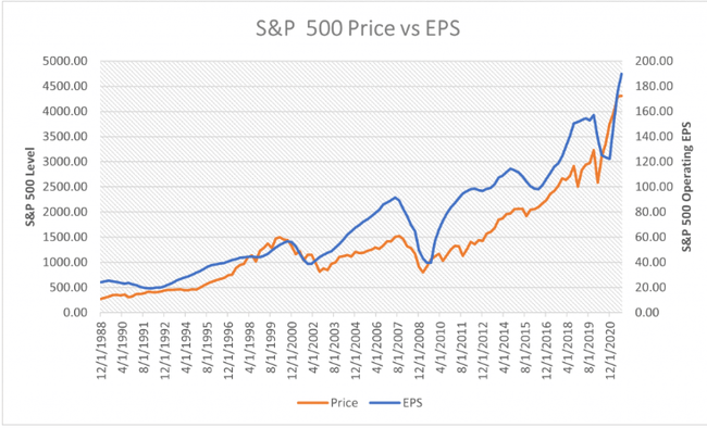 Letztendlich treiben die Gewinne die Aktienkurse. Die Geschichte ist in dieser Hinsicht eindeutig. In der Tat ist die Geschichte in dieser Hinsicht mathematisch gesehen so eindeutig wie in nichts anderem.