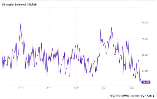 Warren Buffett sagte einmal, dass es am besten ist, gierig zu sein, wenn andere Angst haben. Und alle haben jetzt Angst. Der Prozentsatz der bullischen Einzelanleger in den USA liegt jetzt bei 16,4 %. Das ist der niedrigste Stand seit 1992. Das bedeutet, dass die Anleger heute weniger optimistisch sind als zu Zeiten der Covid-19-Pandemie, der Finanzkrise 2008 und des Dot-Com-Crashs.