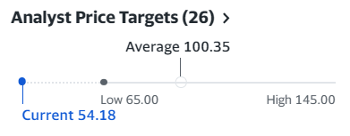 Wie wir sehen können, prognostizieren die Analysten von Yahoo einen Durchschnittspreis von 100 $ für dieses Unternehmen, was eine Steigerung von fast 100 % bedeutet, aber wir müssen uns darauf konzentrieren, dass sie einen Verlust von fast 850 Millionen $ für 2022 haben.