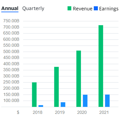 Die schlechte Performance der Alibaba-Aktie hat nichts mit den Fundamentaldaten des Unternehmens zu tun. Der Nettogewinn stabilisierte sich 2021 bei 23,66 Mrd. USD, während der Nettoumsatz im Jahresvergleich um 40,7 % auf 112,2 Mrd. USD stieg.