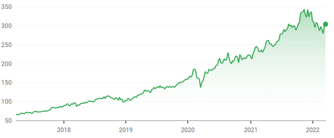 Alphabet ist kein defensives Unternehmen wie viele andere Blue-Chip-Aktien. Das Unternehmen zahlt nicht einmal eine Dividende wie Apple und Microsoft. Es ist jedoch eine sichere Sache. Nach den derzeitigen Erwartungen wird Alphabet bis zum Jahr 2023 einen Umsatz von mehr als 350 Milliarden US-Dollar erzielen.