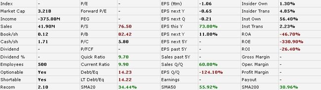 Ein erster Blick auf die Basiskennzahlen ist erschreckend. Das Unternehmen macht Verluste und kommt nicht einmal annähernd an einen ordentlichen Umsatz heran. Kurz gesagt, das Unternehmen sieht nach den Basiskennzahlen ziemlich mies aus. Darüber hinaus weist das Unternehmen eine negative Eigenkapitalrendite sowie eine negative Rendite auf das investierte Kapital auf, wenn man nach links schaut.