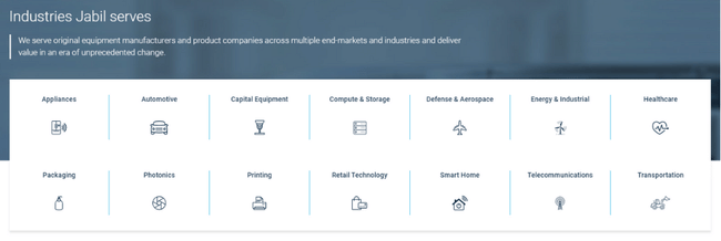 Jabil dringt in diese Branchen ein und verkauft seine Produkte an sie 👇.