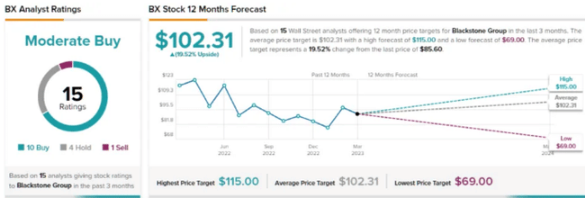 Der Analyst Michael Cyprys von Morgan Stanley stufte das Unternehmen mit "Overweight" ein und gab damit einen positiven Ausblick auf die künftige Entwicklung des Unternehmens. Er legte ein Kursziel von 115 $ für Blackstone fest, was auf ein potenzielles Kursplus von 35 % in den nächsten 12 Monaten hindeutet.