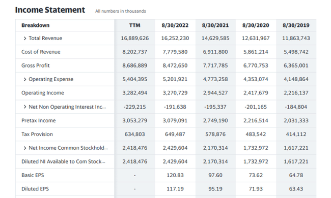 Die Gesamtverbindlichkeiten des Unternehmens (einschließlich Minderheitsanteilen) belaufen sich zum 30. August 2022 auf 18,813 Mrd. USD, was einen deutlichen Anstieg gegenüber 2019 bedeutet. Das Unternehmen hat auch einen hohen Schuldenstand mit Gesamtschulden von 9,296 Mrd. USD zum 30. August 2022.